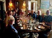 Langbord i Herresalongen: Vi nyter middagen i kandelaber-belysning.