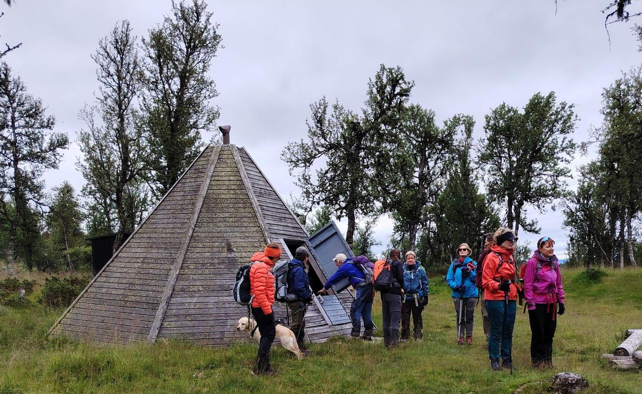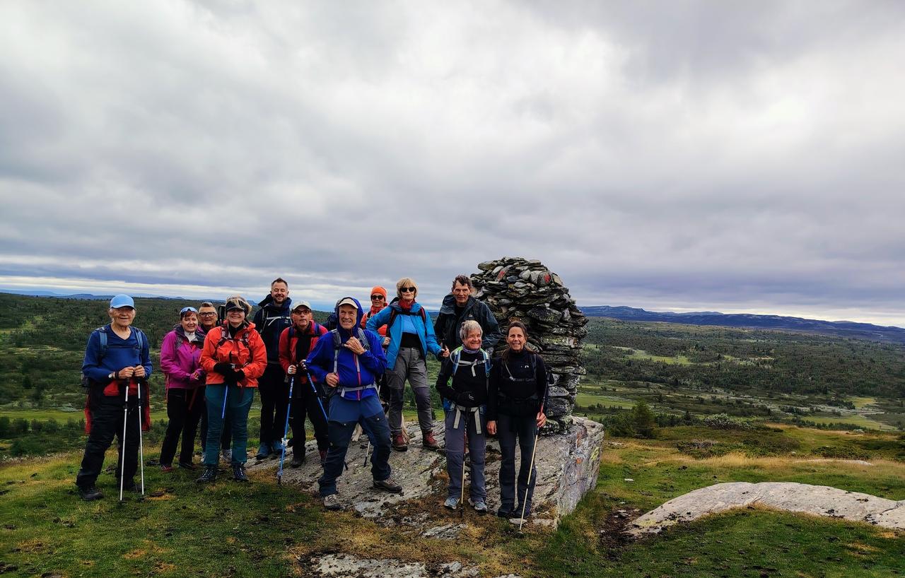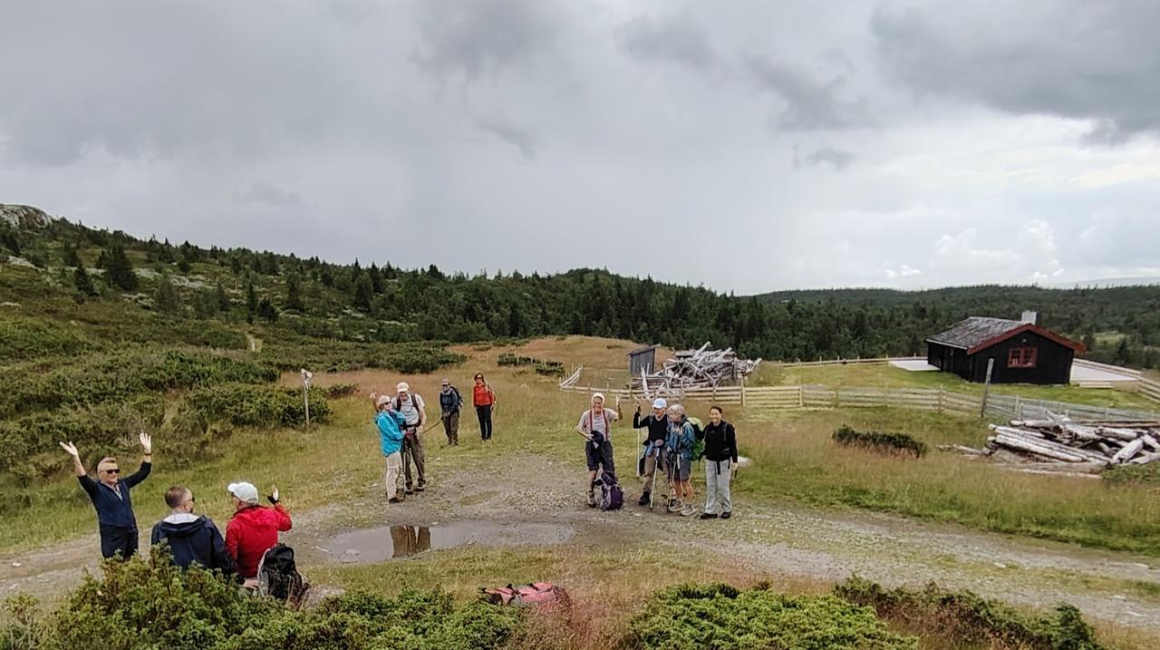På sti i lett terreng, delvis i bjerkeskog. Oppover til Kantlikappen 1050 moh. Flott utsyn i alle retninger. Ned igjen på fin sti til Lauvåsen kafe. Vi spiste inne og mange koste seg med kaffe og hjemmebakst. Så var det på med regntøy igjen. Vi fulgte grusveien tilbake. Etter middag fikk vi et foredrag om leirskoleliv og historien til Fagerhøy.